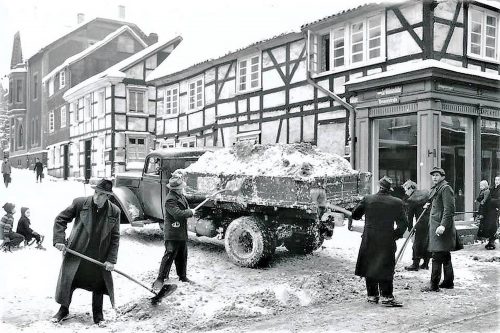 Im 19. Jahrhundert führte die Familie Bergers hier Sattlerei und Möbelhandel ein. Das alte ehemalige Bauernhaus war das erste, das hier gebaut wurde. Das Foto zeigt die alten Häuser, die mittlerweile verschwunden sind. An ihrer Stelle stehen jetzt Neubauten.