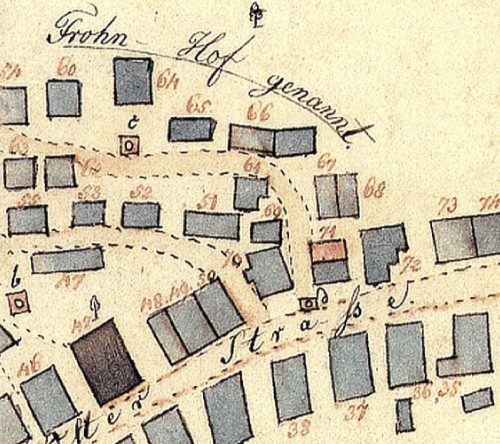 1764 | Haus Nr. 67 Feuer Soci. catast. 92 | Witwe Ansel Herz; Jüdin, arm ein Sohn älter als 9 Jahre; Engelbert Hölcken Familie |