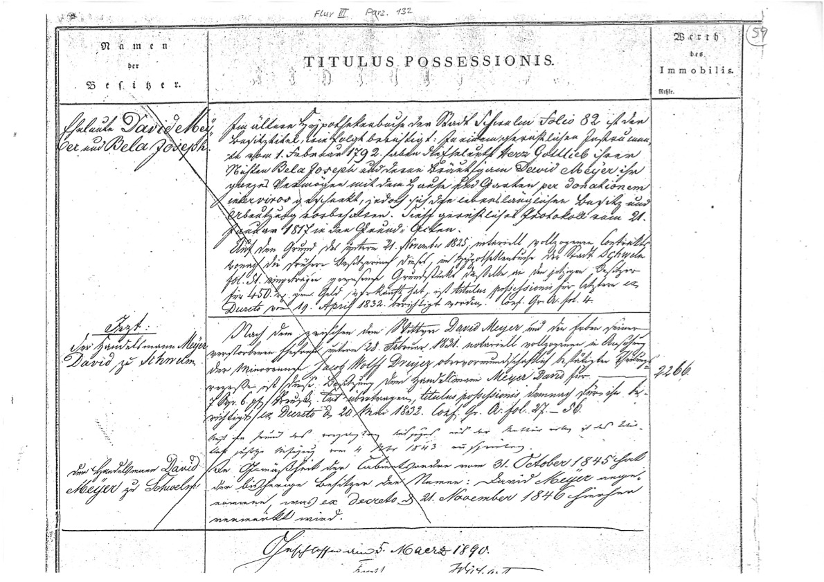 1897 | Kirchstraße 13 | David Meyer's Söhne; Inh. Emil Meyer u. Joseph Meyer (E.Meyer wohnt in der Neustraße 14) Joseph Meyer wird als Vorsteher der Synagoge genannt. Elise Meyer; Magd (wohnte 1891 in der Kirchstr. 41) |