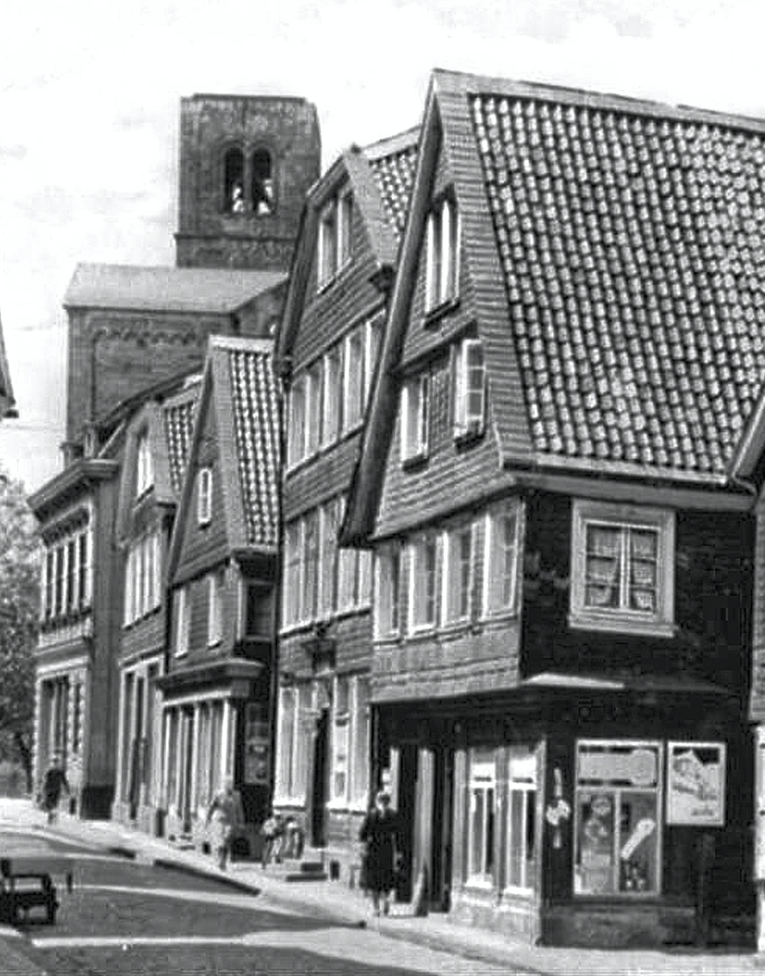 Dieses Haus ist eines der ältesten erhaltenen Gebäude der Stadt. Der Ratsherr Melchior Bröcking ließ es als Fachwerkhaus in der Mitte des 17. Jh. (1648?) erbauen. An der linken Gebäudewand ist noch der Rest einer Verkleidung aus Holzschindeln zu sehen. Die Fassadenverkleidung mit Schieferplatten kam erst Ende des 19. Jahrhunderts auf. Schiefer musste für teures Geld herbeigeschafft werden. Die Einführung der Feuerversicherung und der Transport mit der Eisenbahn machte die Schieferfassade interessant.