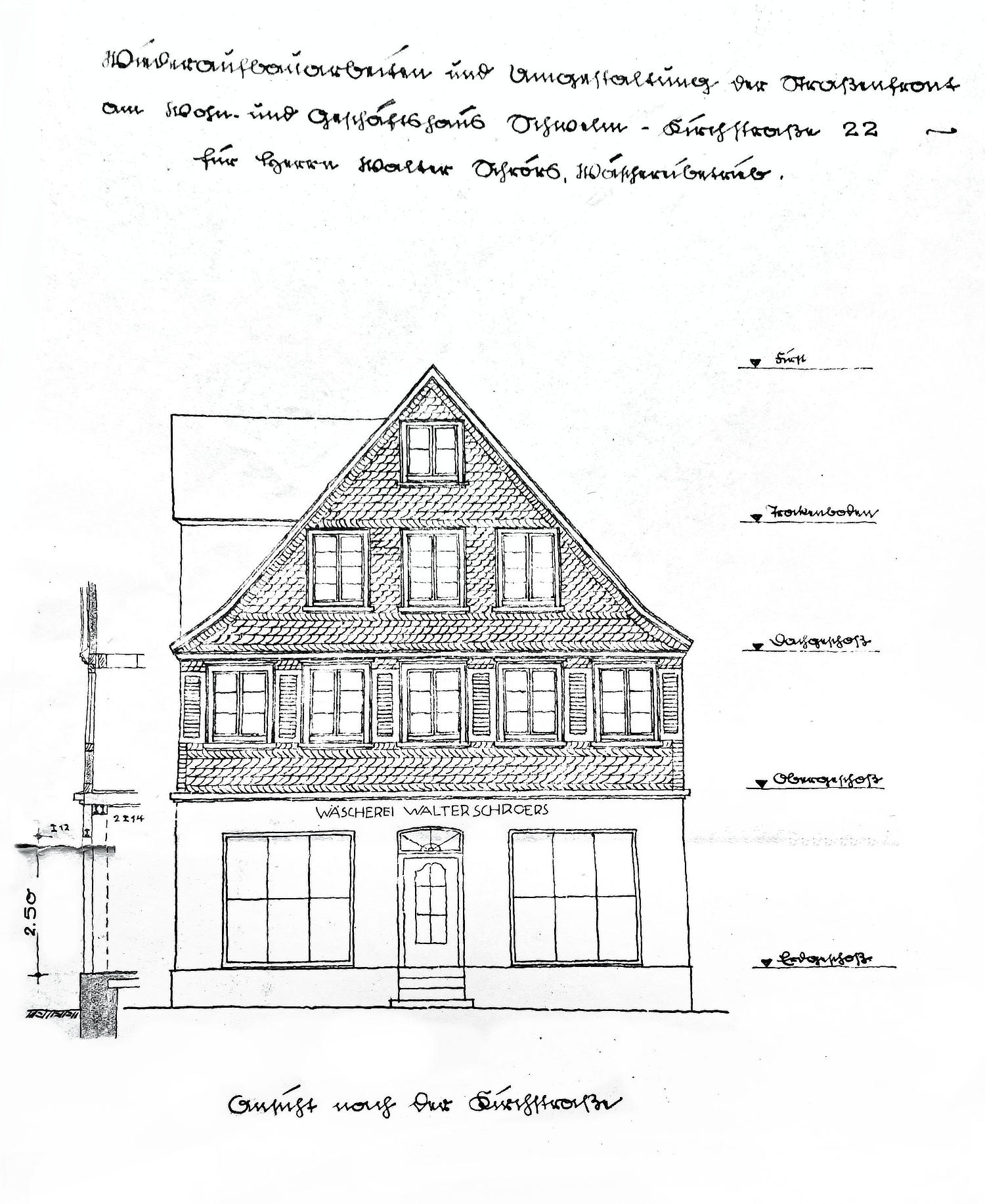 ( 1945 ) | 8 | Bauantrag für neues Schaufenster durch Walter Schroers*, Wäschereibesitzer [11] |