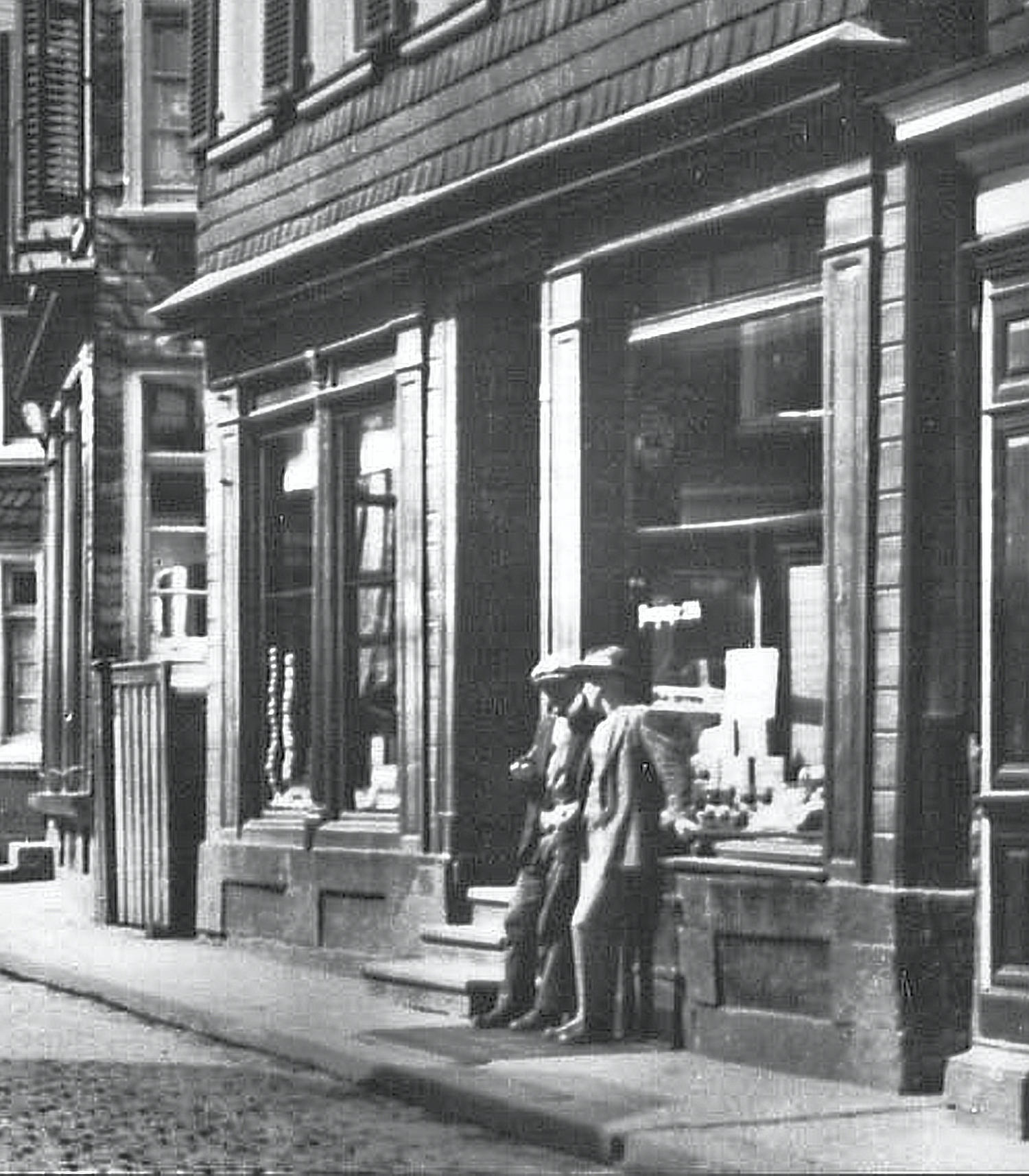 Die Familie Schrörs hat diesem Laden zweimal ein neues Gesicht gegeben. Der Gründer W.Schroers vergrößerte die Fenster und ließ traditionelle Gewandverkleidungen mit Kassetten anbringen. Diese Variante wurde 2023 bei der Generalsanierung wieder hergestellt.