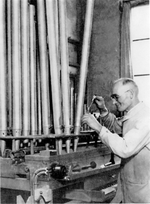 Fausts Nachfolger Carl Bürgle an der Intonierlade.