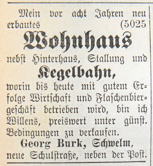 1884-85 | 300 1/3dIII | Georg Burk; Wirt und Bierhändler |