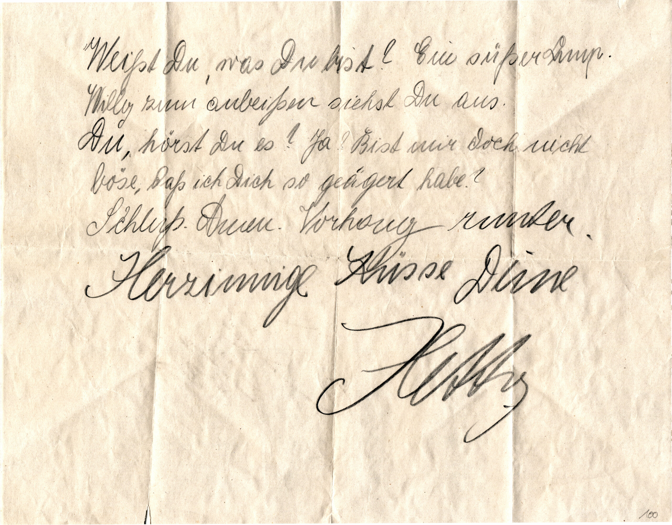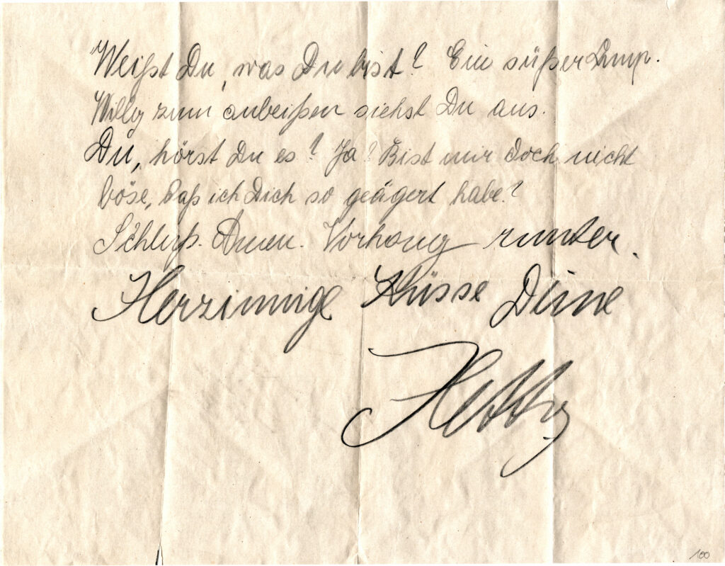 Vom jüngsten Sohn Willi Scheele ist ein Paket Liebesbriefe erhalten. Er ist auf dem Foto von 1915 mit Hut und Stock zu sehen. Die meisten Briefe wurden von Hedwig Ebbinghaus „Hetty“ geschrieben. Hetty ist wahrscheinlich die Tochter von Karl Ebbinghaus, Direktor des Kreis Wasser- und Elektrizitätswerkes. Es könnte sich auch um eine Tochter von Carl Ebbinghaus, Wirth und Bäcker aus der Schulstraße 300e handeln. Der letzte Brief ist ein Glückwunsch zur Verlobung mit Olga Kirchner.