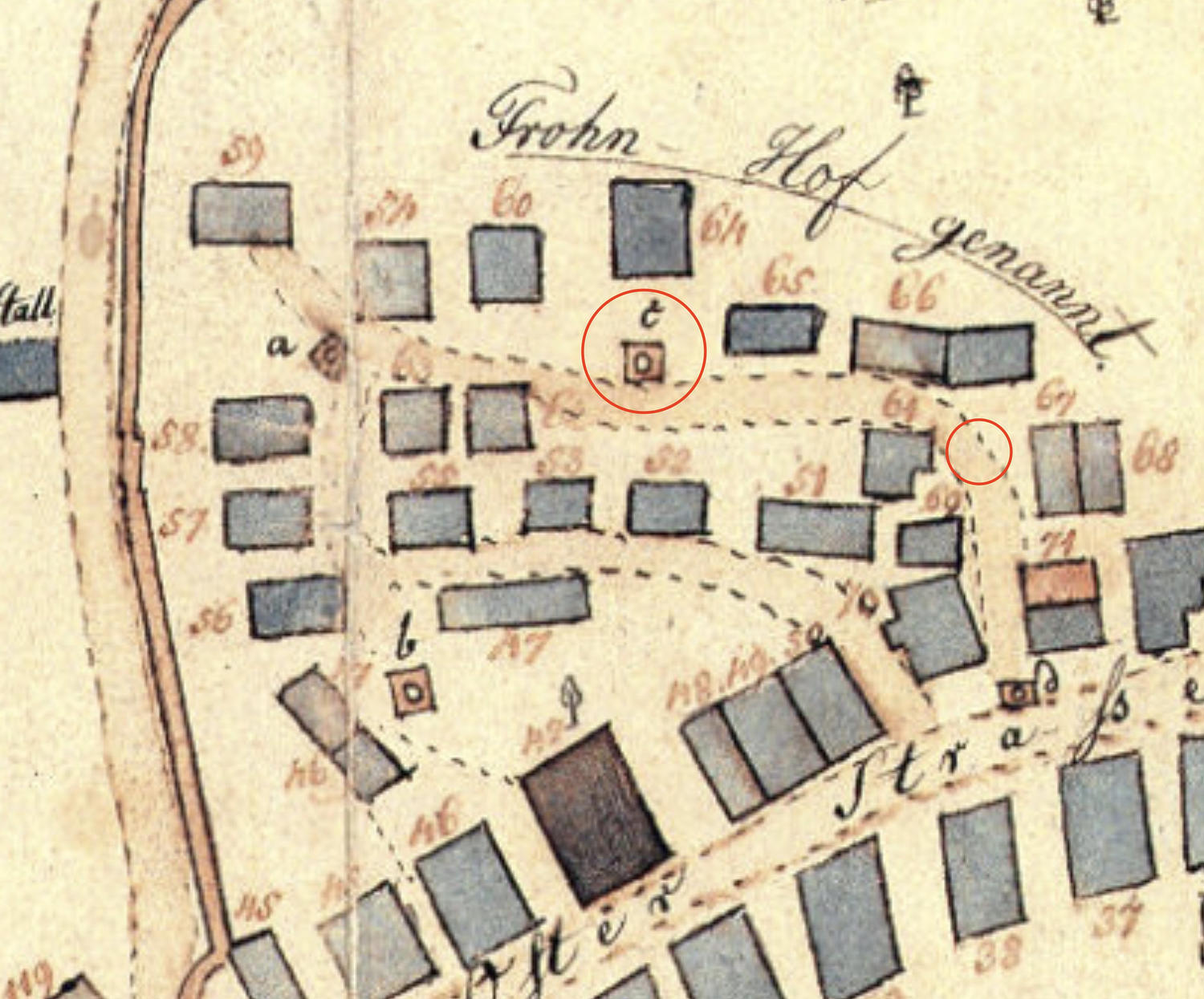 Um die Versorgung der Menschen mit Wasser zu sichern, wurden bis 1905 das Grundwasser angezapft. In Schwelm gabe es neben den Brunnen auch drei Stollen, die in die Flanke des Winterbergs gegraben wurden. Der Fronhofer Stollen, der früher den Brunnen (c) versorgte, wurde für den Wasserträger angezapft.